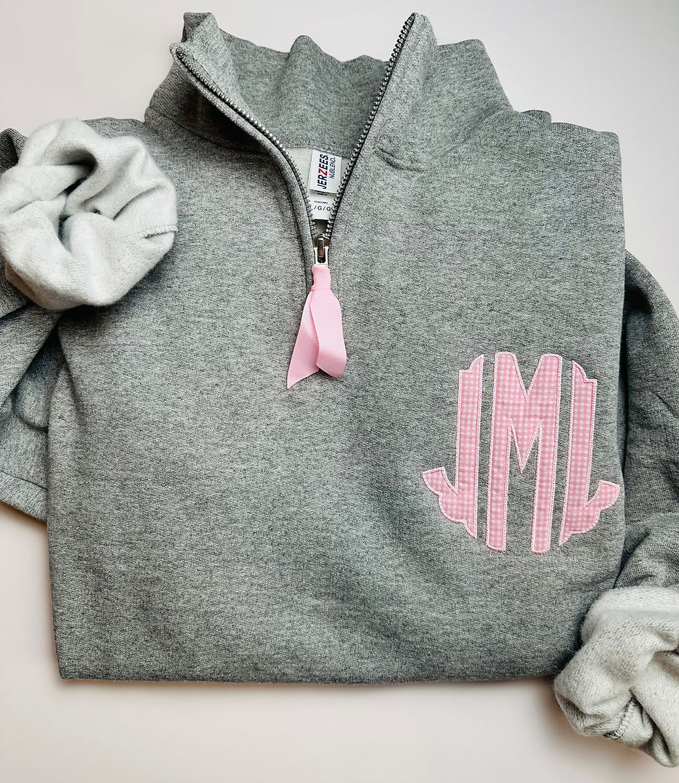 Monogram Quarter Zip - Ribbon zipper pull